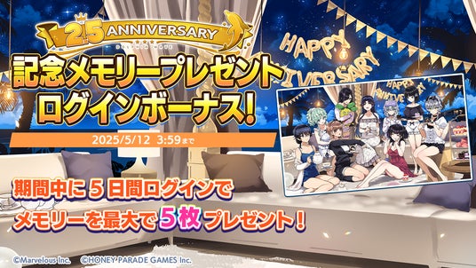 記念メモリーが貰えるログインボーナスを開催!期間中ログインすると2.5周年を記念したイラストを使用したメモリーを合計5枚獲得できます。期間中にログインして記念メモリーをGETしよう!