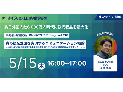 矢野経済研究所主催のセミナーに登壇し『真の観光立国を実現するコミュニケーション概論』について講演することをお知らせいたします。
