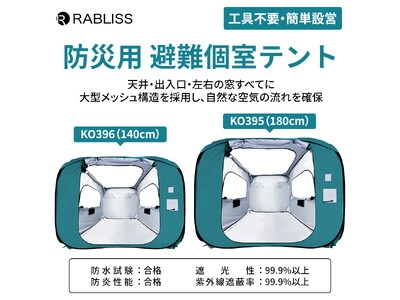 RABLISS KO395 避難個室テント180 / KO396 避難個室テント140