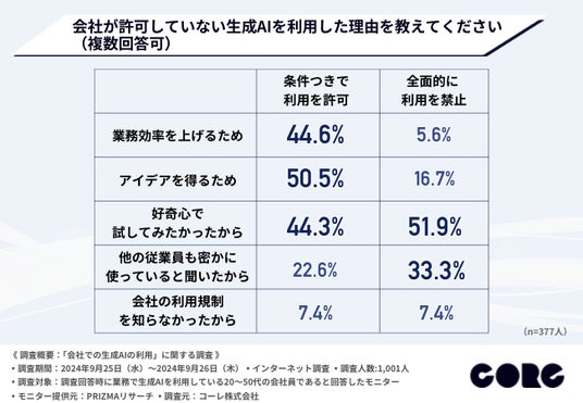 利用禁止の企業でも『好奇心』や『他の従業員からの影響』などの理由で生成AIを利用している!