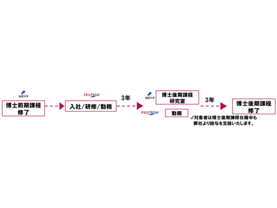 本プログラムでは、滋賀大学博士前期課程修了者を採用し、PKUTECHにおける一定の勤務を経て、滋賀大学の博士後期課程の入学試験(社会人)に合格の後に、PKUTECHに在籍しながら博士後期課程に進学することが可能です。博士後期課程にはPKUTECHより派遣し、費用はPKUTECHが負担いたします。本プログラムの実施により、優秀な博士前期課程修了者の採用とPKUTECHの更なる研究力並びに技術の向上を実現します。
