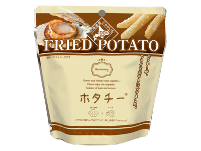 ホタテ干し貝柱とチーズの絶妙なハーモニーで人気を誇る「ホタチー」から、新たなおつまみスナックが誕生しました!このたび、ホタチーの美味しさをそのままスナック菓子にした『ホタチーフライドポテト』を発売いたします。フライドポテトのサクサク食感に、ホタチーをフリーズドライしパウダー状にした特製シーズニングをまぶし、ホタテの旨味とチーズのコクをしっかりと感じられる味わいに仕上げました。おやつにも、おつまみにも最適!ワインやビールとの相性抜群!じゃがいもは北海道産を使用。