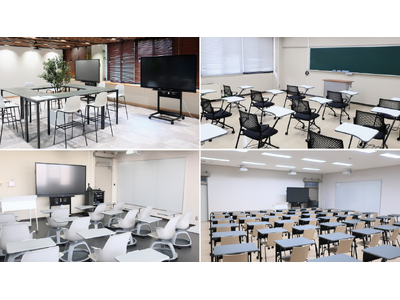 大講義室以外は机や椅子が移動可能で、個別作業・グループワーク・プレゼン形式など、授業スタイルに合わせて自由にレイアウトを変更できるようになりました。