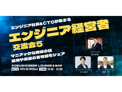 2025年6月9日(月)19:30~ ウェブサービスで実績のあるエンジニア社長3名の幹事による、エンジニア社長&CTOが集まる経営者交流会を開催すると発表した。