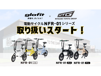 電動パーソナルモビリティの開発・製造・販売を手がけるglafit株式会社(本社:和歌山県和歌山市、代表取締役社長CEO:鳴海 禎造、以下「glafit」)は、2025年4月12日より、宮崎トヨタ自動車株式会社(本社:宮崎県宮崎市、代表取締役社長:佐土嶋 恒夫、以下、宮崎トヨタ)運営の「SUV BASE 宮崎店」において、特定小型原動機付自転車(以下、特定原付)電動サイクル『NFR-01シリーズ』の販売を開始いたしました。