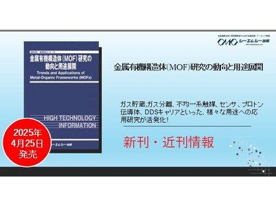 株式会社シーエムシー出版(本社:東京都千代田区神田錦町1-17-1、代表取締役:金森洋平)は、 『金属有機構造体(MOF)研究の動向と用途展開』(定価:税込67,100円)を、2025年4月25日に発売いたします。 本書籍は当社ECサイトおよび全国の書店にてご購入いただけます。