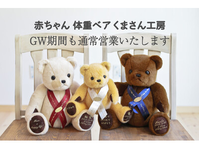 ぬいぐるみ を自社製造・販売する株式会社ドリーム・ワークショップが運営する、「⾚ちゃん体重ベアくまさん工房」(運営責任者:石井正之)は、2025年のゴールデンウィーク期間中(4月26日~5月6日)、通常どおり営業いたします。連休中も変わらず毎日受注・制作・出荷を行い、スピーディーかつ確実な発送体制で、お客様の「今ほしい」に応えるサービスを提供してまいります。