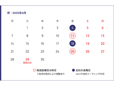 試行を踏まえ、「隔週休3日制・1日あたり8.5時間・出社金曜日は1on1や部門横断/全社のミーティング」への改訂