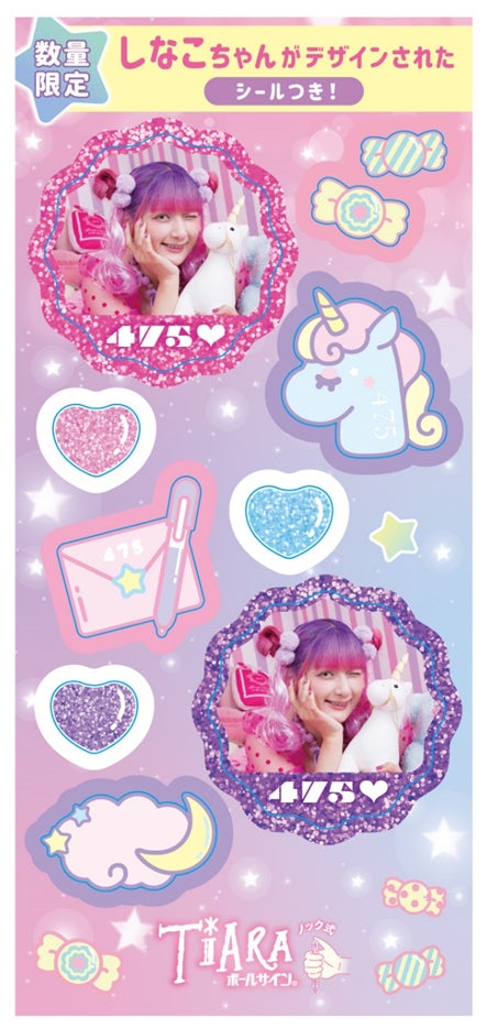 「ボールサイン(R) ティアラ(R)」とは、2000年に発売後、小中学生を中心にラメフレークをミックスしたラメ感のある筆記線が話題となったキラキラペンです。今回定番化となった「ボールサイン(R) ティアラ(R)ノック」も宝石やコスメのような従来のキラキラとしたラメ感は変わらず、小中学生の手紙やノートをかわいく彩ってくれます。また、ノック部分は「ボールサイン(R) ティアラ(R)」の特長でもある丸いキャップの形状を踏襲したデザインを採用しました。この度の定番化に伴い、5色セットと10色セットもラインアップしており、YouTuberのしなこさんとのタイアップ企画第2弾も決定しました。