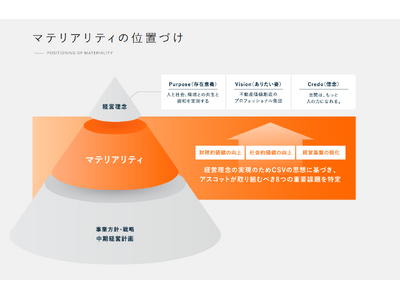 当社は2022年12月公表の中期経営計画において、「人と社会、環境との共生と調和を実現する」ことをPurpose(存在意義)として掲げております。このPurpose(存在意義)を実現するため、自らの強みを活かした経営理念の実現を目指し、「財務的価値の向上」「社会的価値の向上」「経営基盤の強化」を目的とした8つの マテリアリティ(重要課題)を特定いたしました。