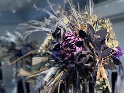 アイビースクエア店に出現するデニムローズと造花で制作された「龍」