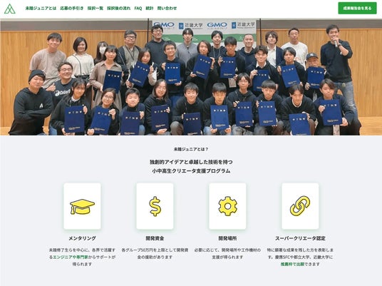 未踏ジュニアとは、独創的なアイデア、卓越した技術を持つ 17 歳以下の小中高生や高専生などを支援するプログラムです。独立行政法人情報処理推進機構(IPA)が実施する 24 歳以下の若者を対象とした人材育成プログラム「未踏事業」の修了生を中心に、一般社団法人未踏によって運営されています。