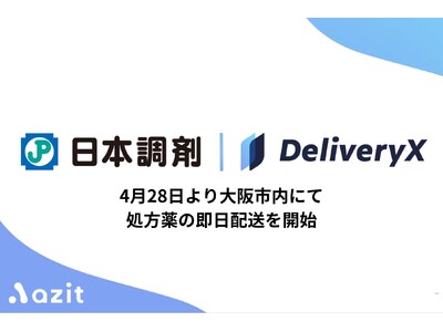 株式会社Azit(本社:東京都港区、代表取締役CEO:吉兼 周優、以下 Azit)と日本調剤株式会社(本社:東京都港区、代表取締役社長:笠井 直人、以下 日本調剤)は、Azitが提供するAI配車プラットフォーム「DeliveryX(デリバリーエックス)」を活用し、大阪市内の一部地域にて、処方薬の即日配送サービスを開始いたします。