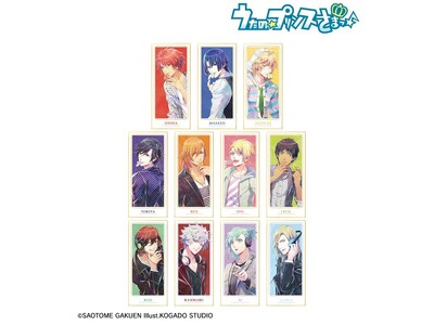 一十木音也、聖川真斗、四ノ宮那月、一ノ瀬トキヤ、神宮寺レン、来栖 翔、愛島セシル、寿 嶺二、黒崎蘭丸、美風 藍、カミュのビジュアルを新たなタッチで魅力的に表現し、アクリルカードに仕上げました。
