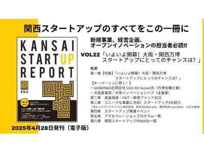 NPO法人生態会(所在地:大阪市北区、理事長:アレン・マイナー)は、関西のスタートアップに特化した情報を提供する「関西スタートアップレポートvol.22」を2025年4月末に発刊します。