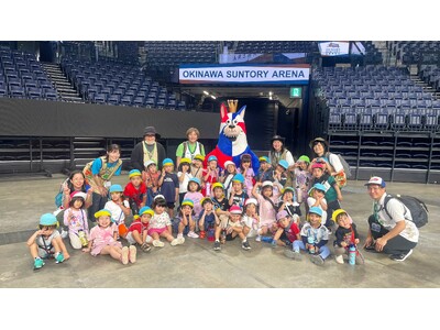 おおきなわ」の活動の一環として「沖縄サントリーアリーナ見学・交流会」を実施し、4月25日(金)にホームタウンの沖縄市にある「山内保育所」の園児32名と職員が沖縄サントリーアリーナを訪れました。