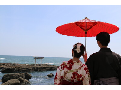 お好きな浴衣を選んで、旅気分をぐっとアップ。番傘や髪飾りなど浴衣にぴったりのアイテムもご用意。浴衣で巡る大洗の町歩きは、写真映えもバッチリ!神社散策にもぴったりの装いです♪
