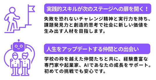 (2)学校の枠を超えた仲間、経験豊富な専門家、起業家、AIが成長をサポート