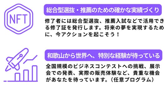 (3)プログラム修了者には、総合型選抜などで活用できる修了証(紙とNFT)を発行