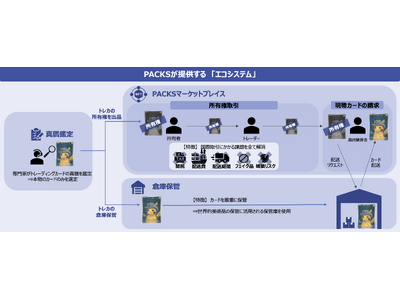PACKSは、実物のトレカを専門家が丁寧に鑑定・倉庫へ保管し、その保管されたカードの「所有権」を発行し、インターネット上で自由に売買できる場を提供する新しいサービスです。