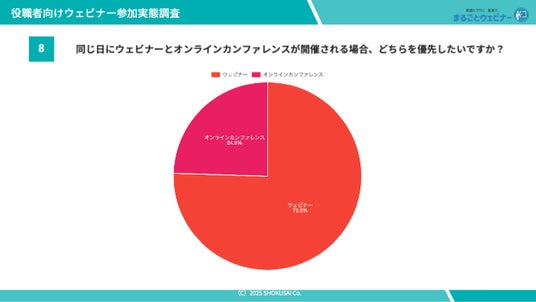 タイパ重視の時代、短時間で効率的な情報収集手段としてウェビナーの高い支持!「まるごとウェビナー」を展開するショクサイ株式会社は、役職者向けウェビナー参加実態調査を実施しました。