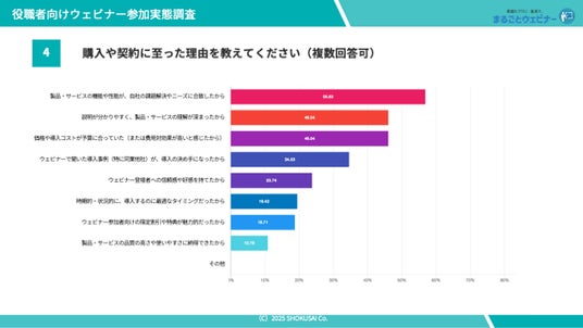 購入に至った理由購入・契約に至った理由(Q4)としては、「製品・サービスの機能や性能が、自社の課題解決やニーズに合致したから」(