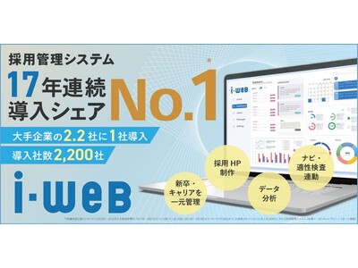 人材の“採用”から“定着”、その先の“活躍”までを支援する人材サービス事業を展開する株式会社ヒューマネージ(本社:東京都千代田区、代表取締役社長:齋藤 亮三)は、ヒューマネージが提供する採用管理システム『i-web』が今年、17年連続で導入シェア第1位*となりましたことをご報告申しあげます。