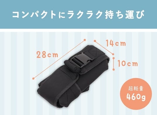 コンパクトにらくらく持ち運び柔らかい素材だから、コンパクトに折りたたみが可能です。かさばらず、わずか460gと超軽量なのでいろんなところへラクラク持ち運べます!