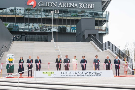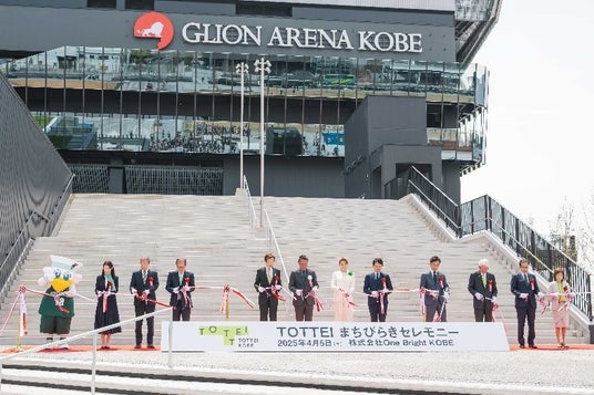 株式会社One Bright KOBE(所在地:兵庫県神戸市、代表取締役社長:渋谷 順)は、2025年4月5日(土)、日本初・270度海に囲まれたアリーナ「GLION ARENA KOBE(ジーライオンアリーナ神戸)」を中心としたエリア「TOTTEI(トッテイ)」の開業に伴い、「TOTTEIまちびらきセレモニー」を開催しました。