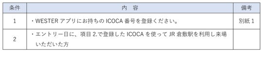 ※抽選へのご参加は当日ICOCAで倉敷駅をご利用(降車)いただいた場合に限ります。