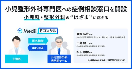 株式会社Medii(本社:東京都新宿区、代表取締役医師:山田裕揮、以下「Medii」)は、医師向け専門医相談サービス「Medii Eコンサル」において、全国的にも数の少ない小児整形外科専門医が、全国の医師からの症例相談を無料で受け付ける相談窓口を開設しました。
