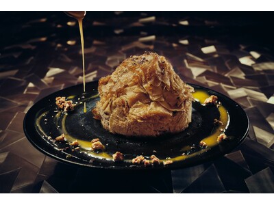 商品詳細:コーヒーシロップをたっぷり浸したビスキュイの上に、濃厚なマスカルポーネクリームやジャンドゥーヤジェラートを重ね、仕上げにフワフワ食感のエスプレッソのかき氷をトッピング。ティラミスをそのまま冷たいかき氷としてお楽しみいただます。また、かき氷のまわりにはキャラメリゼしたヘーゼルナッツや、トロピカルなマンゴーオレンジソースに世界の文化人を魅了したさわやかなハーブ酒「アブサン」を加え、甘味だけではなく深みを味わえるプレミアムな大人のかき氷に仕上げました。