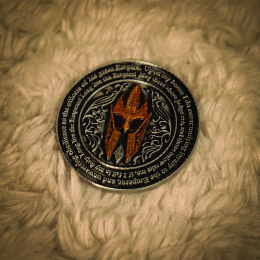 帝都の宮殿と帝国の兜がデザインされた直径38mmの限定コインです。アンティークニッケル仕上げで、個別にナンバーが刻印。全世界9,995枚限定のコレクターアイテム。