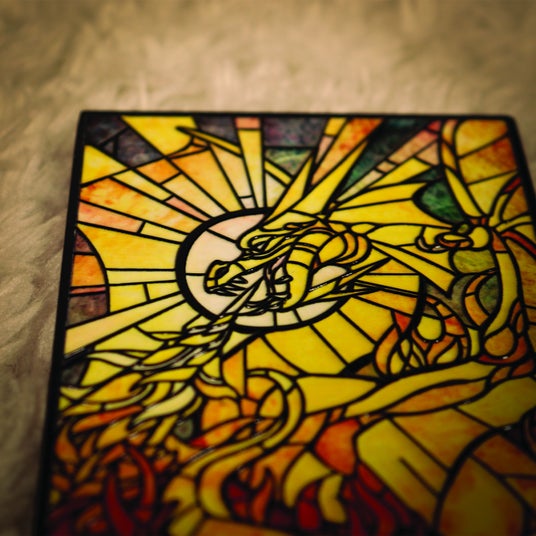 時の竜神アカトシュをステンドグラス風に描いたインゴットです。ブラックニッケル仕上げに彩色が施され、ディスプレイスタンド付きの特別仕様。全世界5,000個限定のコレクターズアイテム。