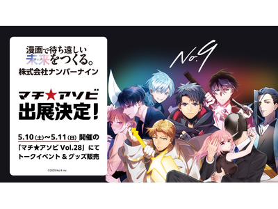 漫画IPパブリッシャーの株式会社ナンバーナイン(本社:東京都品川区、代表取締役社長:小林 琢磨)は、5月10日(土)~5月11日(日)徳島県徳島市で開催される複合エンターテインメントイベント「マチ★アソビ Vol.28」に、初出展いたします。
