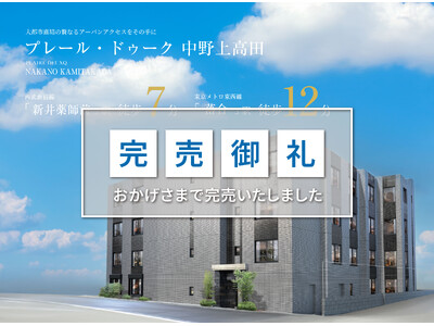 総合不動産事業を展開する株式会社 木下不動産(本社:東京都新宿区、代表取締役社長:坂本 建士)は、都市型収益用マンション「プレール・ドゥーク 中野上高田」の完売(全36戸、決済完了)をお知らせします。