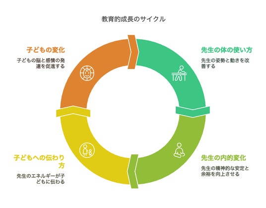 保育や教育の現場では、子どもへの声かけや関わり方に注目が集まる一方で、先生自身の「体の使い方」や「リズム感」が、子どもの脳の働き、集中力、自己肯定感にまで大きな影響を与えることは、まだ広く知られていません。