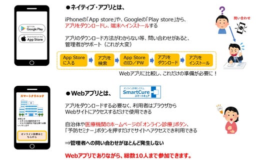 また、患者からの問い合わせ、例えば、APPストアでアプリを検索し、ダウンロードからインストールする際のサポート負担もオンライン診療普及の大きな制約でした。