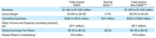 以下の表は、オンセミの2025年第2四半期のGAAPおよび非GAAPベースの見通し概要です。