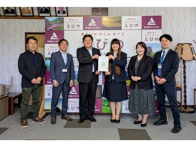 2025年5月7日、宮崎県えびの市で行われた委嘱式。村岡隆明市長から地域活性化起業人(副業型)の委嘱状を受け取る金子彩さん(右から3番目/パーソルビジネスプロセスデザイン株式会社)