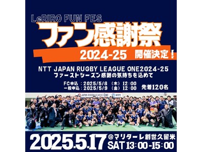 ラグビーリーグワン所属のルリーロ福岡(運営会社:株式会社LERIRO、本拠地:福岡県うきは市、代表取締役:島川 大輝)は、2024-25シーズン《ファン感謝祭》を開催することを決定しました。