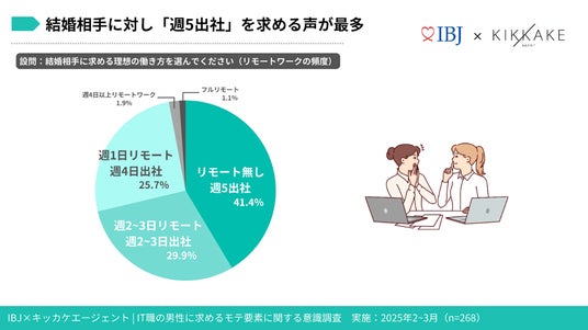 会員数・成婚数ともに国内最多*¹の株式会社IBJ(本社:東京都新宿区、代表取締役社長:石坂 茂、東証プライム:6071、以下「IBJ」)は、「良い未来を、いまカタチに。」をミッションに掲げ、ITエンジニア向け転職支援サービス「キッカケエージェント」を運営する株式会社キッカケクリエイション(本社:東京都渋谷区、代表取締役社長:川島我生斗)と「IT職の“モテ要素”に関する意識調査」を実施しました。
