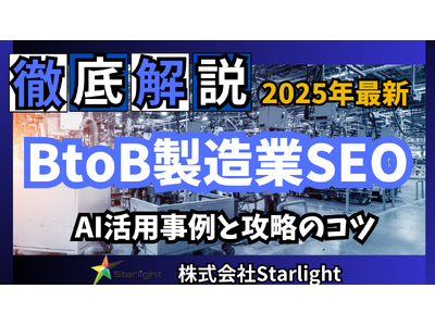 株式会社Starlight(本社:東京都豊島区、代表取締役社長:黒田 真乃介、以下「当社」)は、BtoB製造業界の皆様を対象に「2025年版 BtoB製造業界向けAI×SEOトレンドレポート」を公開いたしました。本レポートはBtoB製造業界がSEOを活用して集客を強化するための最新事例や成功パターン、そして成果に直結する戦略的なAI×SEOノウハウを一冊に集約しています。