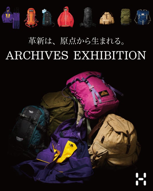 集めた「ホグロフス・アーカイブ展」では、初期のバックパックやウェ