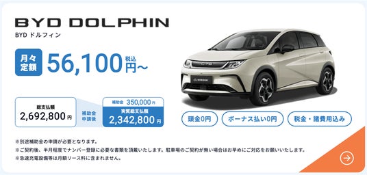【1】 EVが月額56,100円(税込)~で新車から乗れる
