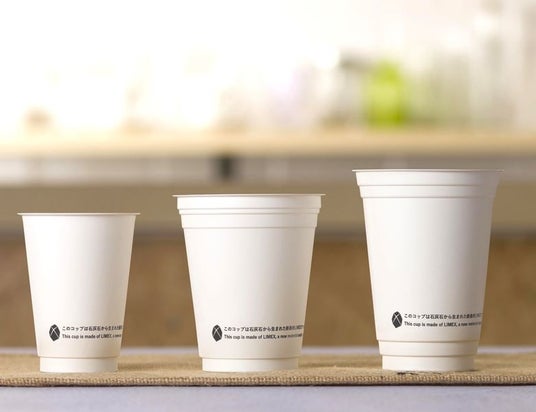 【石から生まれたカップ】石灰石などの無機物を50%以上含んだ、地球環境に配慮したカップです。[出展社名:RP東プラ(株)]