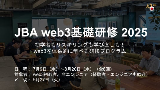 JBA web3基礎研修について少し気になる、受講するかはともかく把握はしておきたい、JBAってどんな団体?…等々、そんな方向けに次の日程で説明会を開催します。ぜひお気軽にご参加ください。お待ちしております!