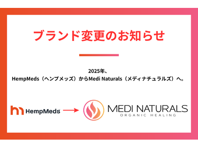 「Medi Naturals(メディナチュラルズ)」へ変更します。これまで「HempMeds(ヘンプメッズ)」は、「結果を追求するアスリートまで安心して導入できるCBDブランド」として、品質と安全性にこだわった製品をお届けしてきました。またオーガニック・ナチュラルといった素材へのこだわりも、多くのお客様に支持されてきました。