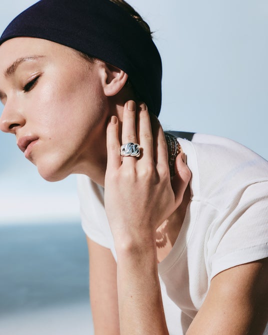 シンプルな見た目を生かし、好みのジュエリーとの合わせ使いも素敵。