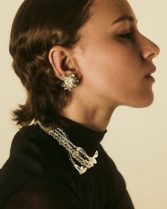 ラナンキュラスの艶やかな花弁に着想を得た奥行きとキレのあるシルエットのイヤリング。